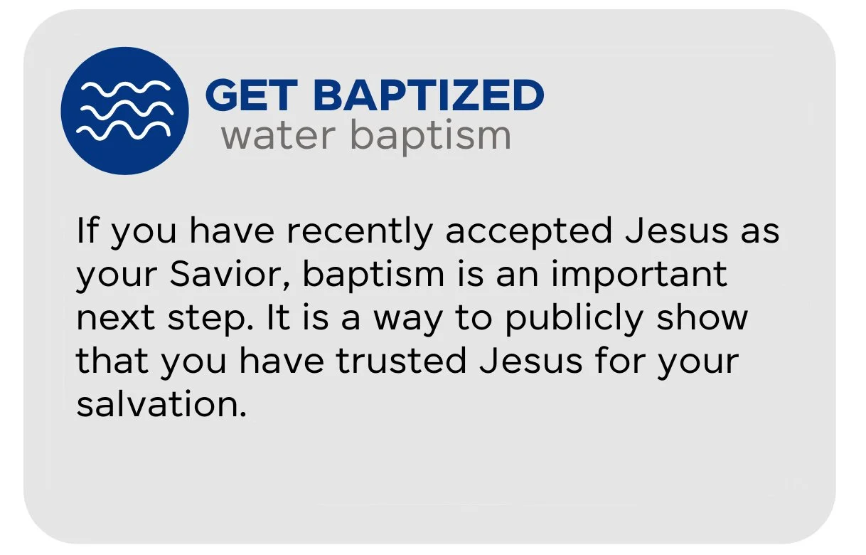 Whether that's publicly declaring your faith in Jesus by getting baptized or leading your first small group, each step is key to growing closer to Jesus and living out the purpose He has for your life.